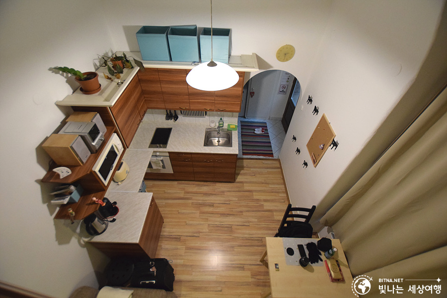 원룸이지만 복층으로 되어 있다보니 침실과 주방, 거실 등의 공간들이 제대로 구분되어 있고 충분히 넓었다. 대부분의 가구는 역시나 남의 집도 내 집처럼 느끼게 해준다는 이케아라 이상하게 익숙한 느낌;