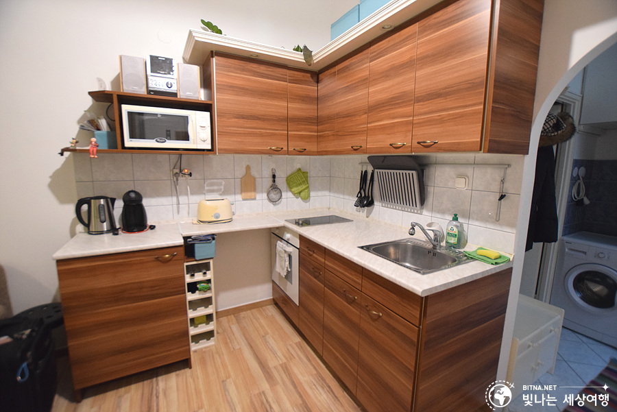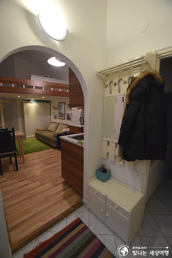 숙소가 자리한 곳은 ㅁ자 형태의 규모가 큰 건물이었는데, 외관은 꽤 오래된 듯 보였지만 엘레베이터도 있고 정문과 층별로 잠금장치가 있어 편리하고 안전했다. 호스트인 에스터 Eszter의 안내해 준 위치에서 열쇠를 찾아 스튜디오 안으로 입장, 오오~ 사진보다 더 괜찮은데?!