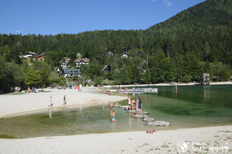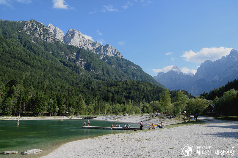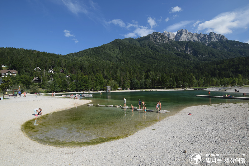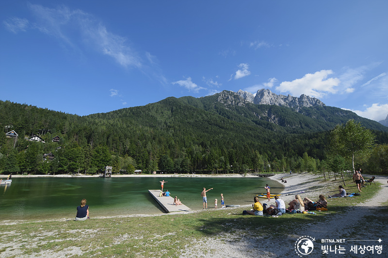 야스나 호수 Lake Jasna는 율리안 알프스에서 녹아내린 빙하수가 고여 만들어진 곳이다. 수심이 깊지 않고 어디서나 바닥이 훤히 내려다 보일 정도로 말고 깨끗해 (그리고 엄청 차가워서) 아이들의 물놀이 장소로 인기가 높았다. 푸른 숲이 그대로 반영되어 초록초록한 수면은 바라보고 있는 것만으로 눈이 맑아지는 기분이었다.