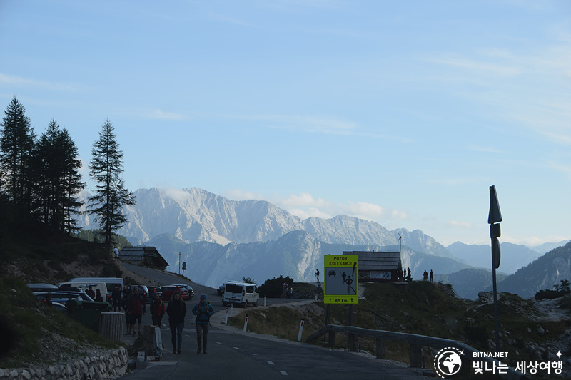 갑자기 도로 양 옆으로 멈춰서는 앞 차들을 따라 차를 세웠다. 여기는 브르시크, 1,611m의 높이의 도로 정상으로 슬로베니아 최고봉인 트리글라브 Triglavski를 포함한 율리안 알프스의 풍경을 가장 잘 볼 수 있는 지점이란다. 크란스카 고라에서부터 자전거나 오토바이 혹은 도보로 패스를 오른 이들은 여기서 절정을 맞이하고, 백패커들은 여기서부터 Prisank (2,547m), Mala Mojstrovka (2,332m), Plaja (2,453m) 등의 고봉으로 가는 트래킹을 시작한다. 물론 우리처럼 기념사진만 찍고 하산하는 이들도 많다. ㅋㅋ