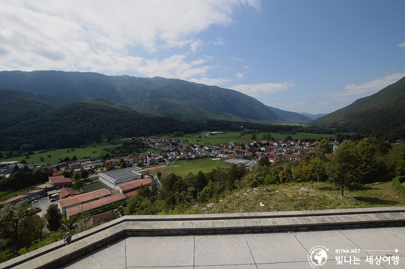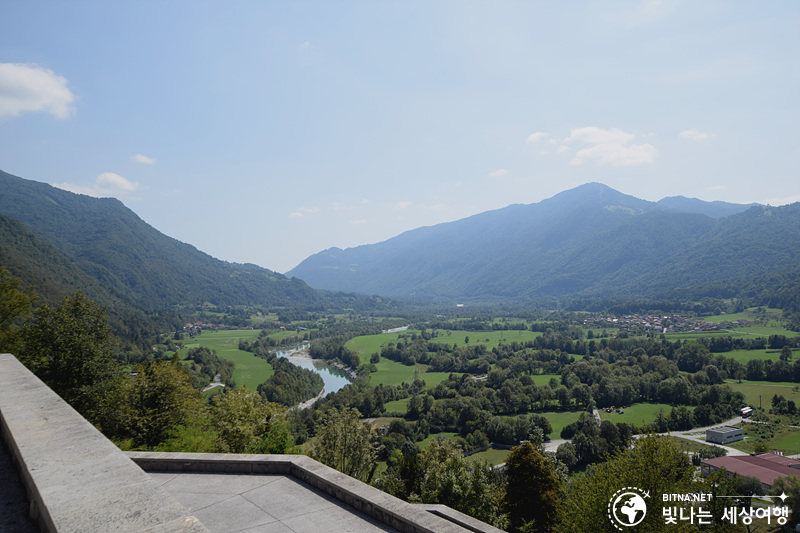 납골당 위에서니 코바리드 마을과 주변 풍경이 한 눈에 들어왔다. '강물은 맑고 얕으며 흐름이 빨랐다. 하늘색 물빛, 산 정상에 눈이 보인다.' 헤밍웨이가 묘사한 풍광 그대로가 살아있었다. (헤밍웨이의 <무기여 잘 있거라.>는 카포레토 전투를 배경으로 하고 있다.) 핏빛으로 물들었던 아픈 과거를 씻어버린 강물이 신비로운 청록빛으로 반짝였다.