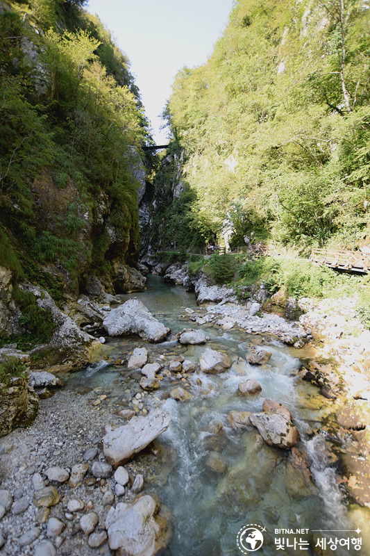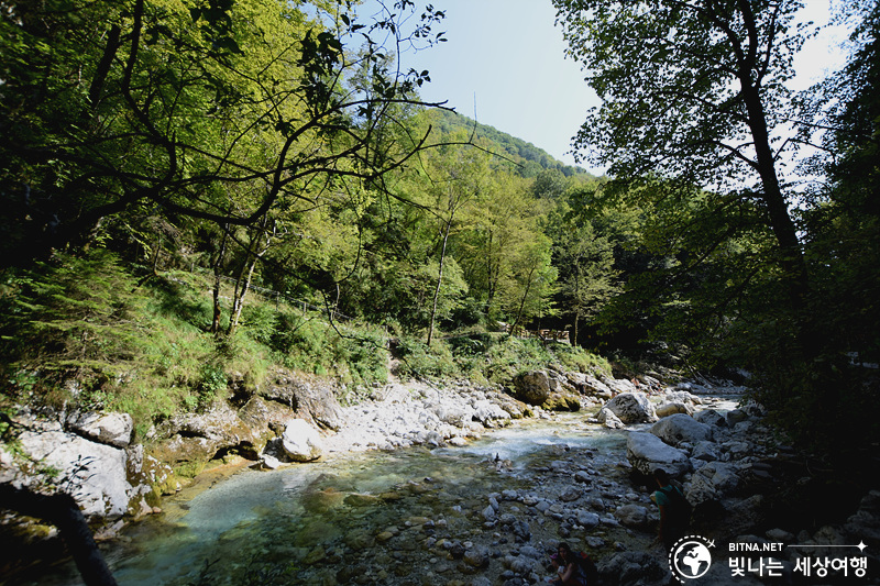 우리가 톨민을 찾은 이유는 바로 여기 톨민 계곡 때문이었다. 아기를 동반한 여행이라 할지라도 슬로베니아에 와서 트래킹 한번 안하고 가기엔 왠지 조금 서운할 것 같았으니까. 톨민 계곡은 블레드 호수에 인접한 빈트가르 Vintgar 협곡과 함께 슬로베니아 트래킹의 양대산맥으로 꼽히는 곳. 톨민계곡이 있는 소차밸리가 블레드 호수보다는 방문객의 발길이 적다보니 보다 여유롭게 트래킹을 즐길 수 있다는 것이 나름의 장점이기도 하다.